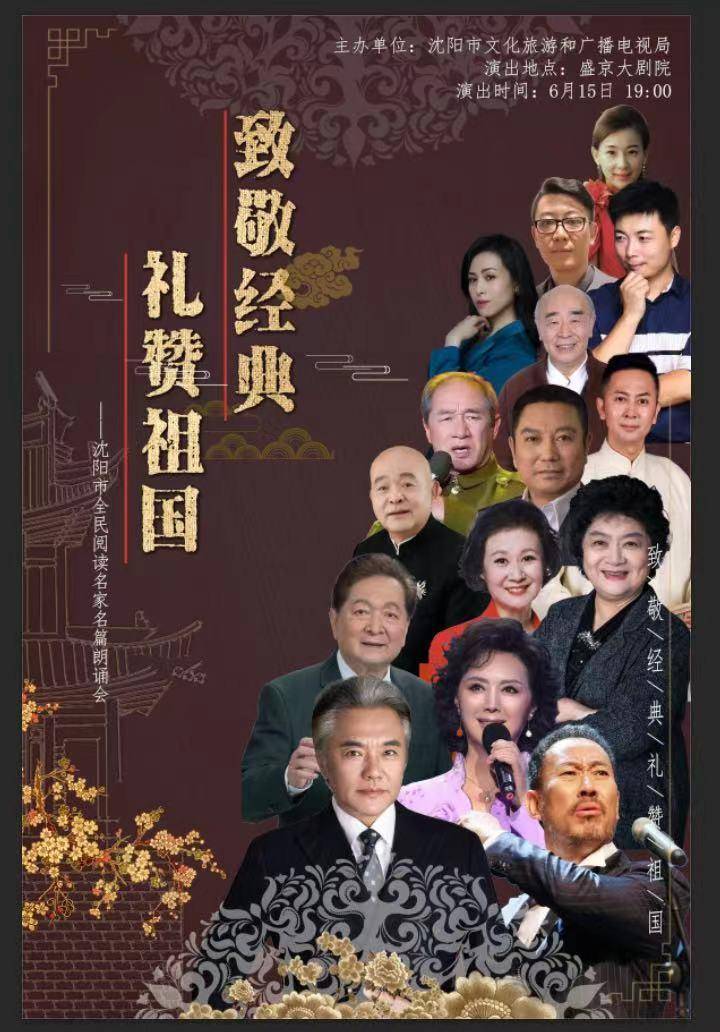6月15日,《致敬經典 禮贊祖國》沈陽市全民閱讀名家名篇朗誦會將在盛京大劇院舉行。