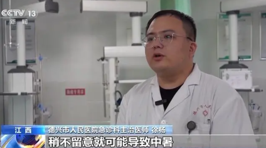 江西省德興市人民醫院急診科主治醫師 徐楊:人在高溫濕熱的環境中如果防暑措施不到位,稍不留意就可能導致中暑,輕度中暑如果得不到及時的治療就會轉化為熱射病。