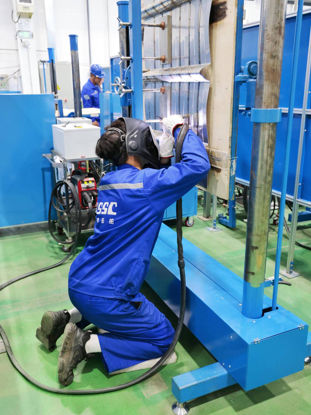 其中,焊接是關鍵工序?!爸髌帘?.2mm厚不銹鋼波紋板焊接總長度達4.7萬米,誤差不能超過0.3毫米?!盠NG運行部計劃工藝科科長秦明介紹,任何微小的漏點,都可能造成整船LNG泄漏爆炸。