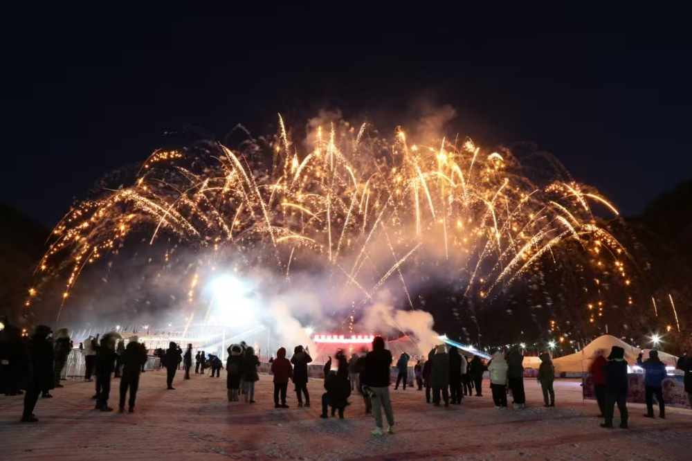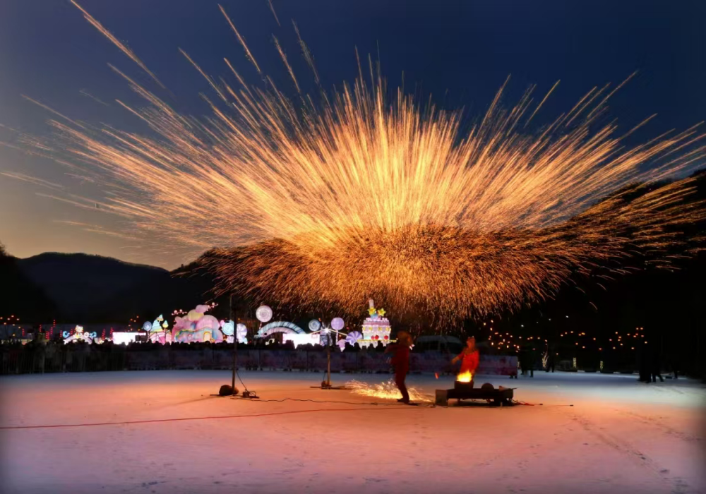 啟動儀式現場群山披雪銀裝素裹,燈海冰雕璀璨奪目,歌舞飛揚人頭攢動,滑冰嬉雪熱鬧非凡,特產美食應有盡有,七百架無人機在夜空中作畫,五彩繽紛的煙花閃耀大地。以冰雪為媒,迎八方來客,撫順縣為游客打造了一個美輪美奐、異彩紛呈的冰雪新天地。