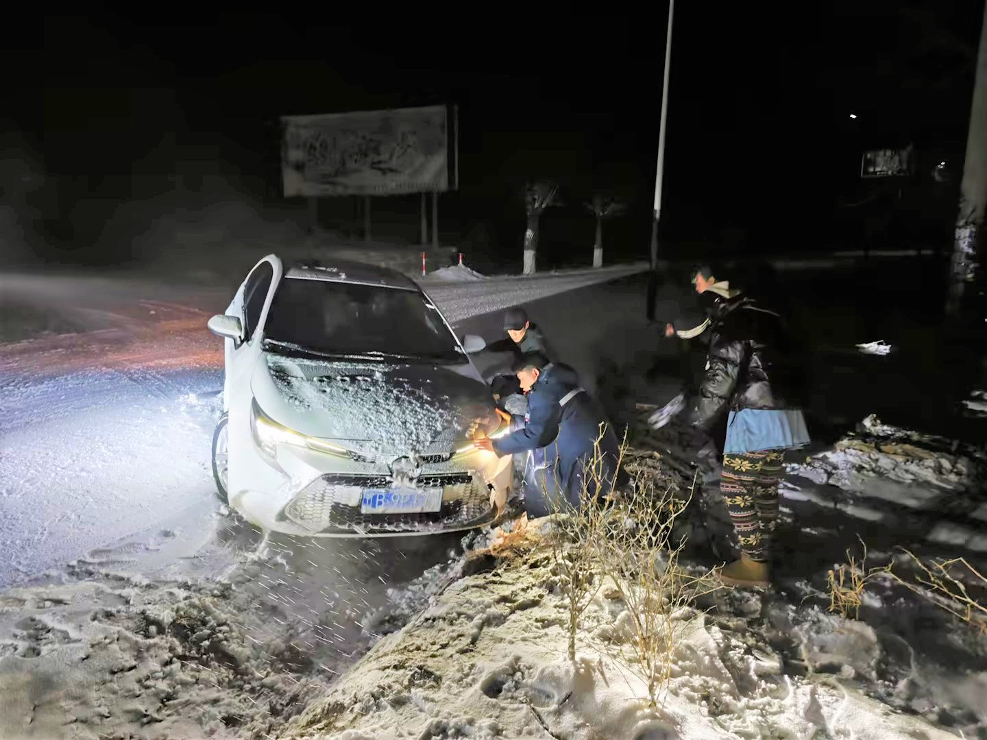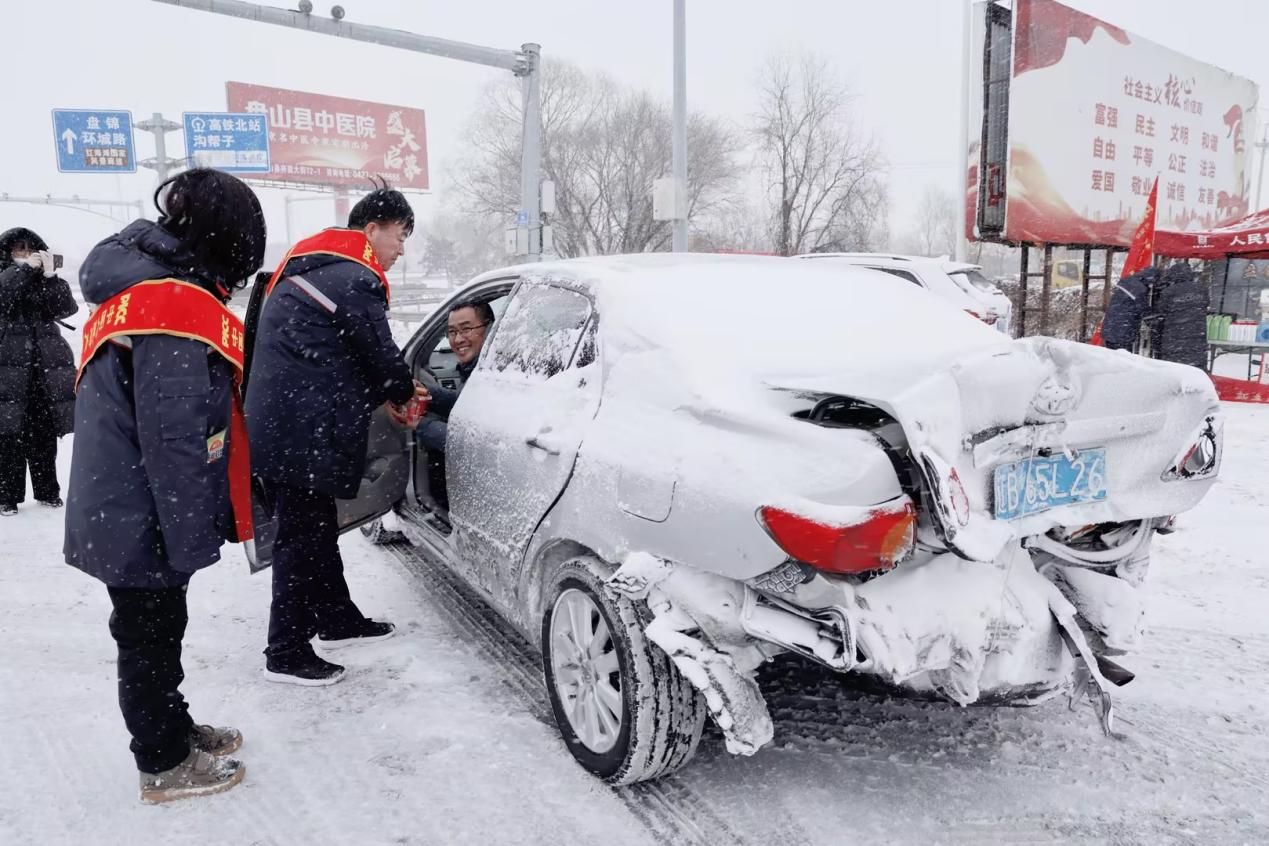 盤錦分公司積極營救暴雪事故車輛,送上幫助與關懷。司機雖遇困境仍露出暖心的微笑。