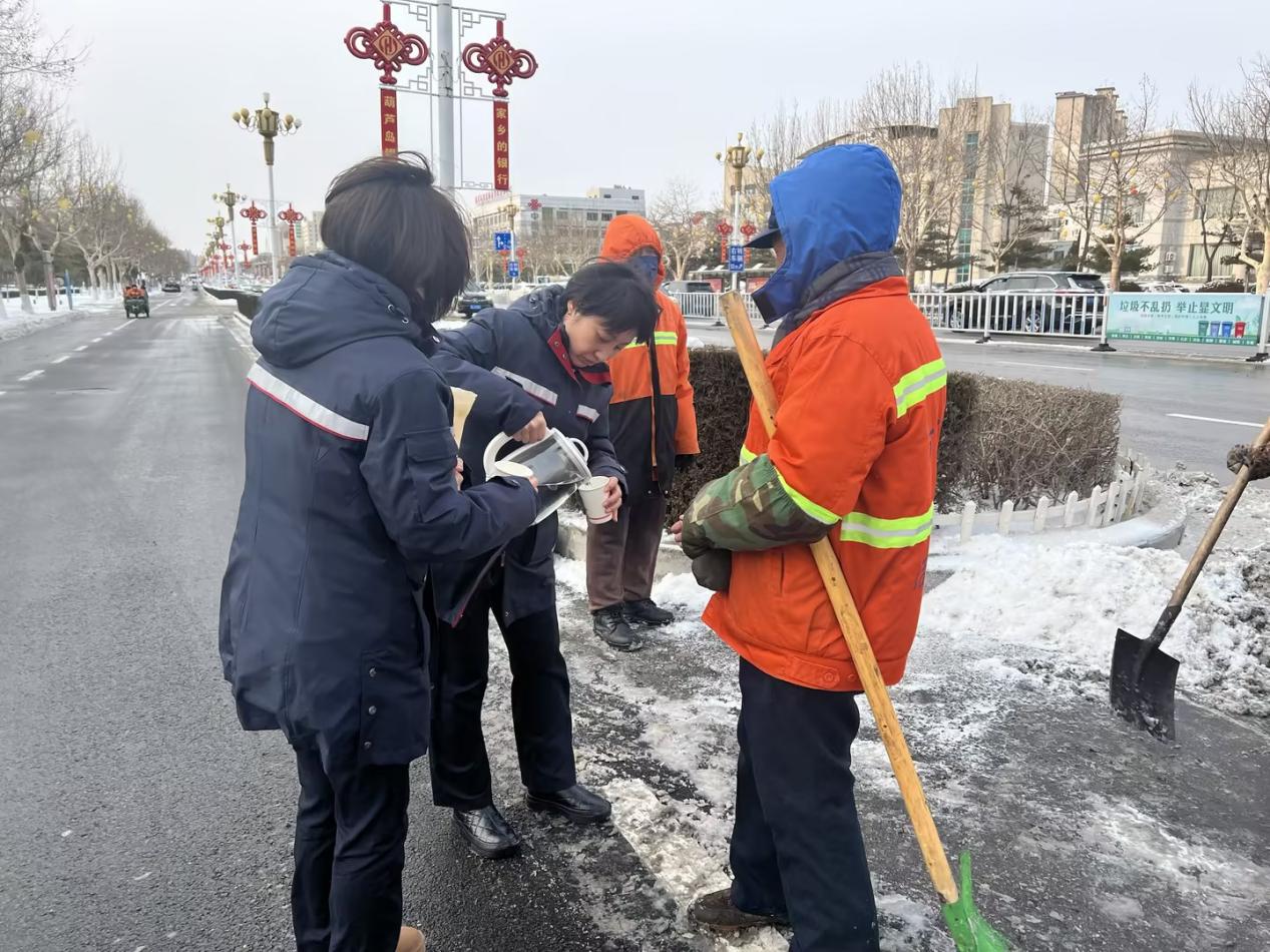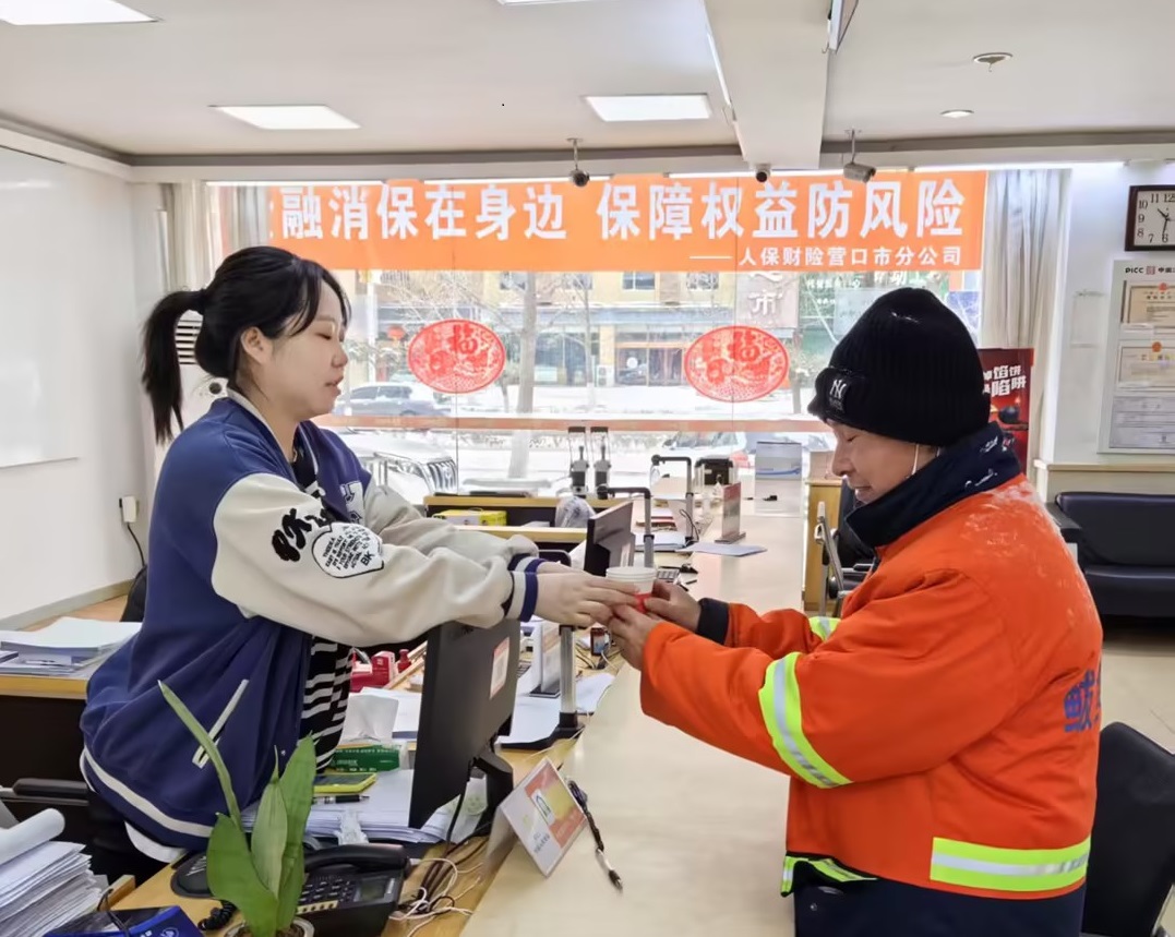 營口分公司為辛勤的環衛工人免費提供熱飲,在這特殊的天氣,為他們送去一份溫暖與關懷。