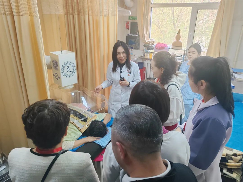 馮春玲院長代表皇姑區中醫院對來訪人員表示熱烈歡迎,詳細介紹了皇姑區中醫院的發展成長歷程和特色診療科目,并引導新疆塔城基層醫療機構代表,逐一參觀了康復科、骨傷科、傳統療法治療中心、中醫減重門診、名中醫工作室等特色科室,實地觀摩了中醫適宜技術在臨床中的具體操作與應用。醫護人員嫻熟的技法、顯著的治療效果,給參觀人員留下了深刻印象。