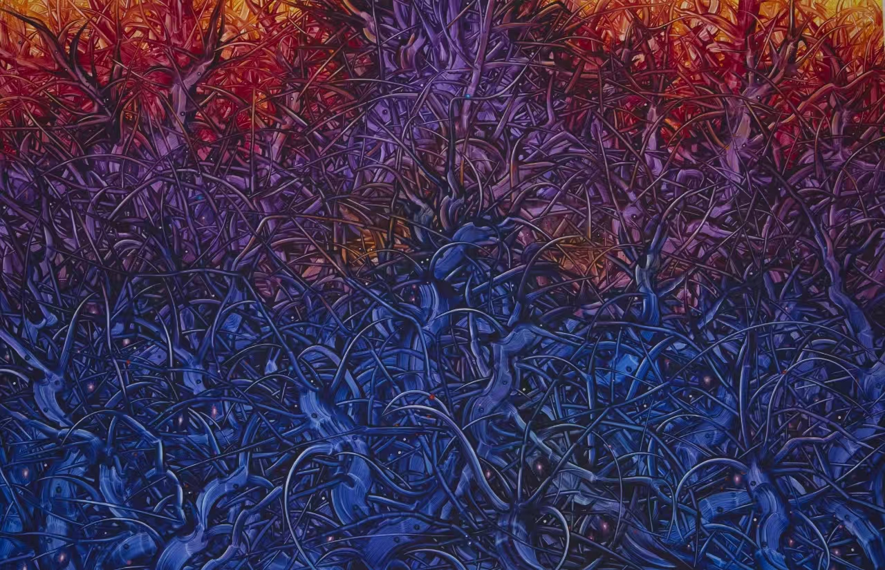 評論家劉寶平表示,袁德華獨創“油畫工筆畫”技法,把東西方美學完美熔鑄,他認為袁德華藝術最核心的突破在于其開創的獨特“油畫工筆畫”的繪畫風格。他創造性地將中國傳統工筆畫精謹入微的線描勾勒、細膩層疊的渲染技法,與西方油畫濃烈豐富的色彩表現力、厚重的肌理質感和空間塑造深度相融合。這種跨文化的藝術實踐,打破了材料與技法的藩籬,使其作品既擁有油畫的視覺震撼力,又散發著工筆畫特有的清雅韻致與精密之美,形成了獨樹一幟、極具辨識度的個人藝術語言。