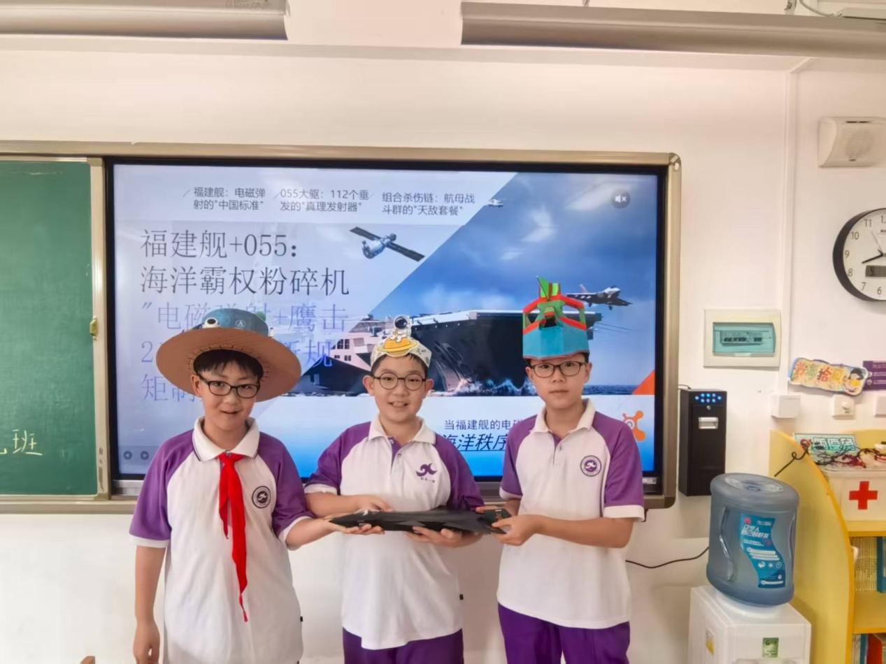 學校的低年級課堂化身為紅色啟蒙的沃土,孩子們頭戴親手制作的“小紅心”頭飾,聆聽老師動情講述英雄故事。一顆顆赤誠的童心在指尖與心靈的同頻共振中跳動,愛黨愛國愛人民的種子悄然生根發芽。三四年級的課堂流淌著傳統文化的馨香。非遺剪紙的精巧、傳統服飾的華美,與紅色書籍的深邃交相輝映。學生們在沉浸式體驗中領略中華文化的博大精深,文化自信與優良品行在潛移默化中茁壯成長。高年級學子以“科創筑夢”為號角,透過大國重器的輝煌歷程和親手實踐,小發明、小制作觸摸時代脈搏,感受科技偉力。探索的眼神閃爍著求知的光芒,實踐的汗水澆灌出理想的蓓蕾,“強國有我”的誓言化作前進的無窮動力。