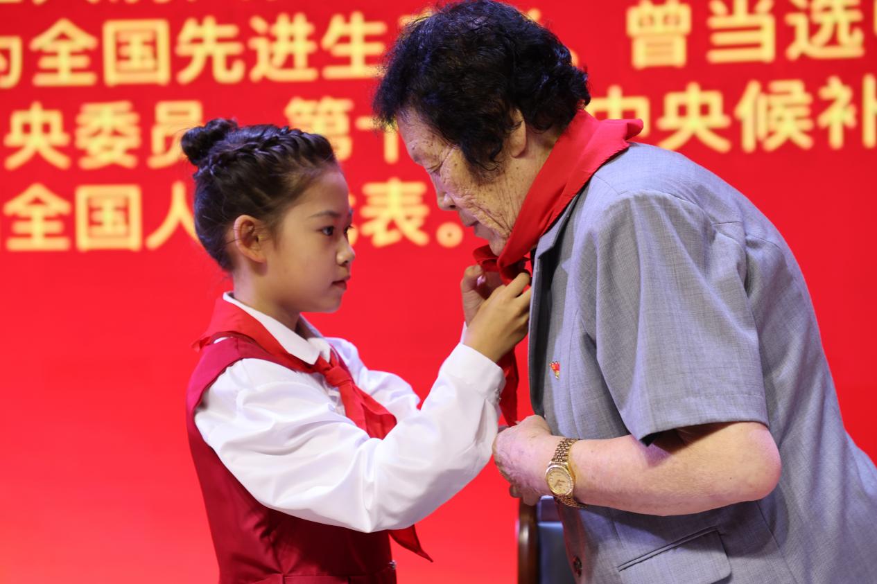 全國勞動模范尉鳳英老人,為師生們帶來一場難忘的紅色思政課。她以樸實話語重溫烽火歲月,詮釋“平凡鑄就偉大”的真諦,令全場師生動容。和平區教育局與學校代表將學生們創作的剪紙肖像作品送給尉鳳英老人,傳遞薪火溫情,滿載美好和祝福。這一刻,紅色基因跨越時代,完成了一次莊嚴的傳承。
